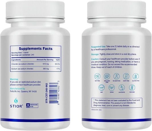 Sodium Chloride Tablets 1000mg, 240 Tablets, Sodium Chloride, Salt Pills with Electrolytes for Running, Non-GMO, Electrolytes Replenisher Hydration Drink, Made in USA