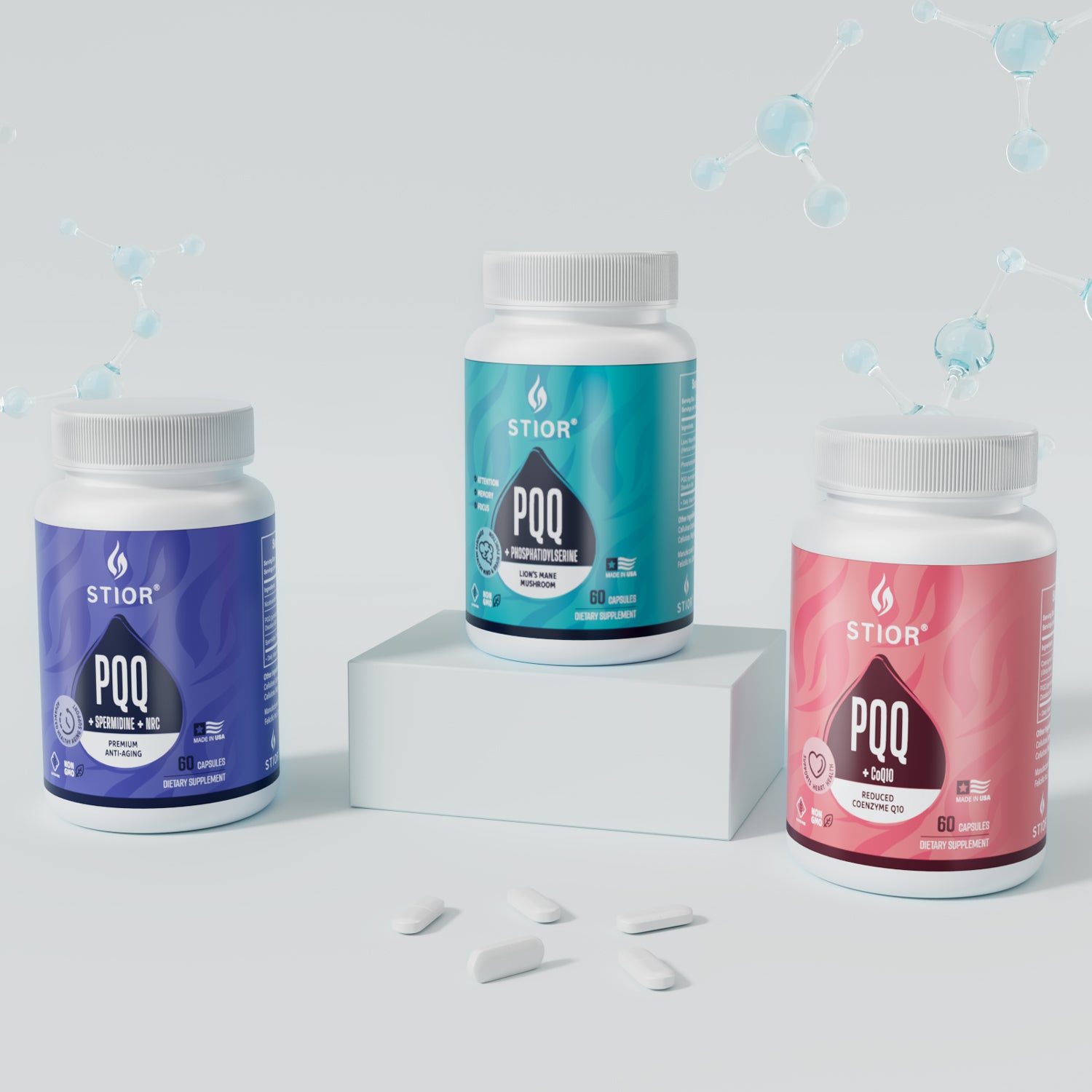 Our advanced formulas, developed by a team of health experts and scientists, leverage cutting-edge technology to deliver superior products that elevate your health and well-being.As a brand, Stior embodies the perfect blend of science and nature.  Our products are meticulously crafted, harnessing the power of PQQ and other premium ingredients to deliver optimal health benefits.  They are the result of our relentless pursuit of quality, efficacy, and scientific advancement.