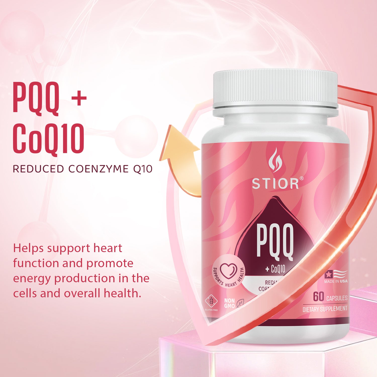 STIOR PQQ + CoQ10 reduced coenzyme Q10 helps support heart function and promote energy production in the cells and overall health.