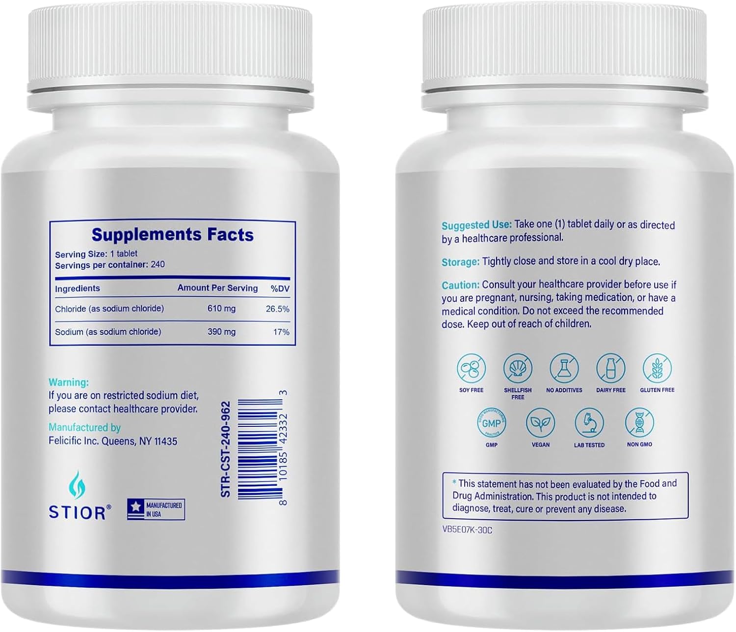 - Supports Hydration: Sodium Chloride Salt Tablets are great for replacing essential salts lost through sweating, and are ideal for athletes, outdoor workers, those who participate in strenuous sports, or those who are on a low-sodium diet.